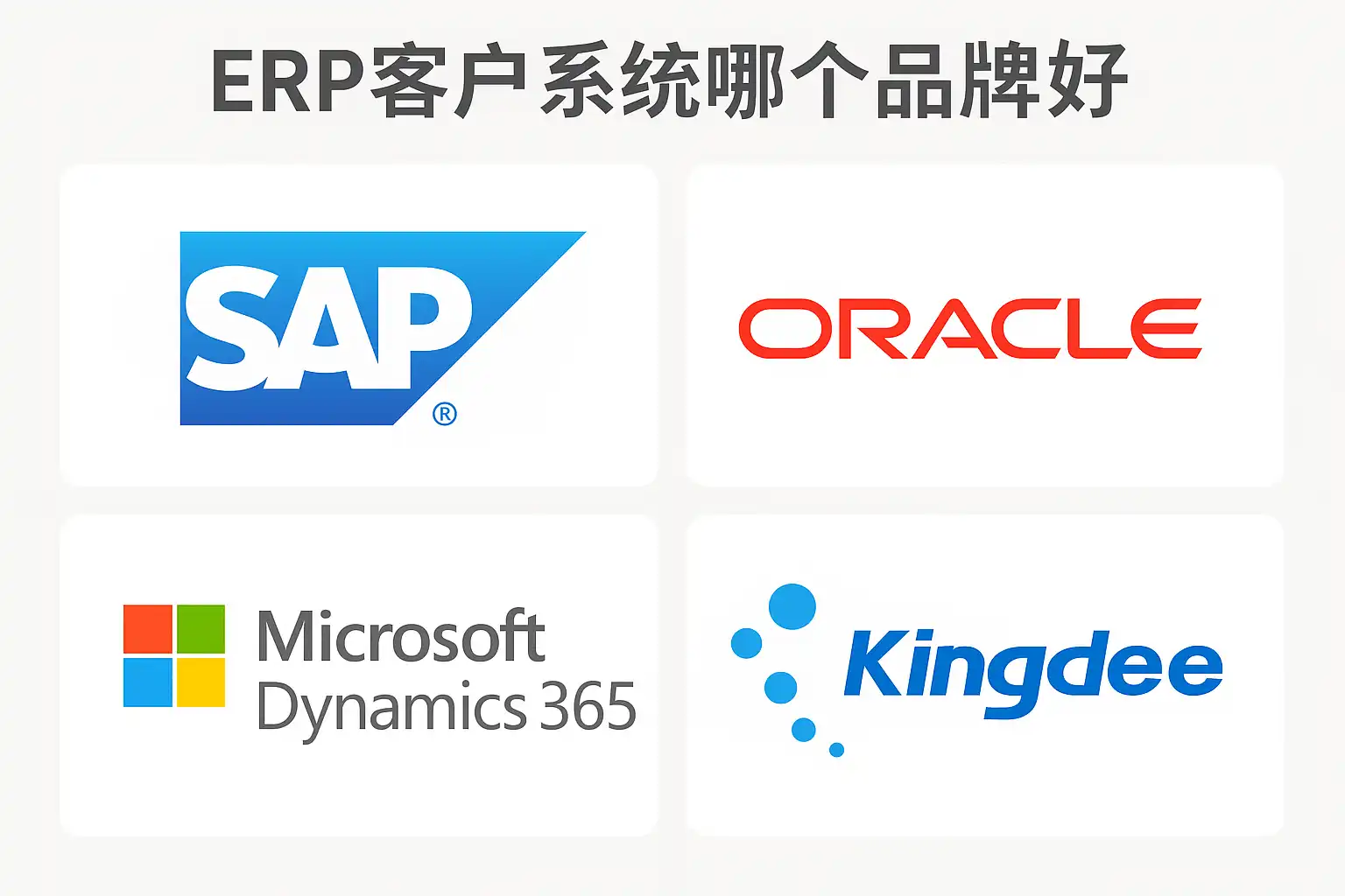 结论: 不同品牌各有侧重。简道云以灵活易用著称,金蝶/用友强调本地行业经验,SAP/Oracle/Salesforce更偏国际高端市场。