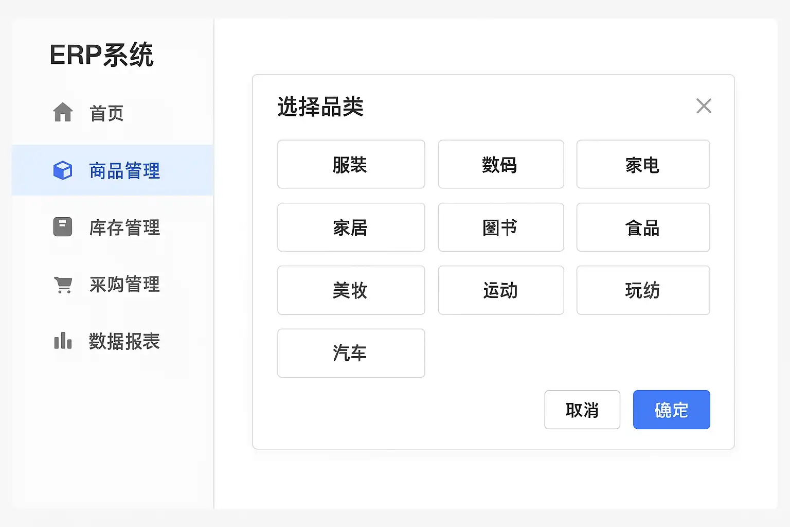 许多企业在实际运营中,需要对产品进行分门别类,以便于库存管理、销售分析及供应链优化。“选品类类型”功能,是指ERP系统允许用户根据自身业务需求,对商品按不同类别(如服装、数码、家电等)进行自定义归档与管理。具备该功能的ERP系统,能显著提高商品信息结构化程度,实现精准的数据统计与业务决策。