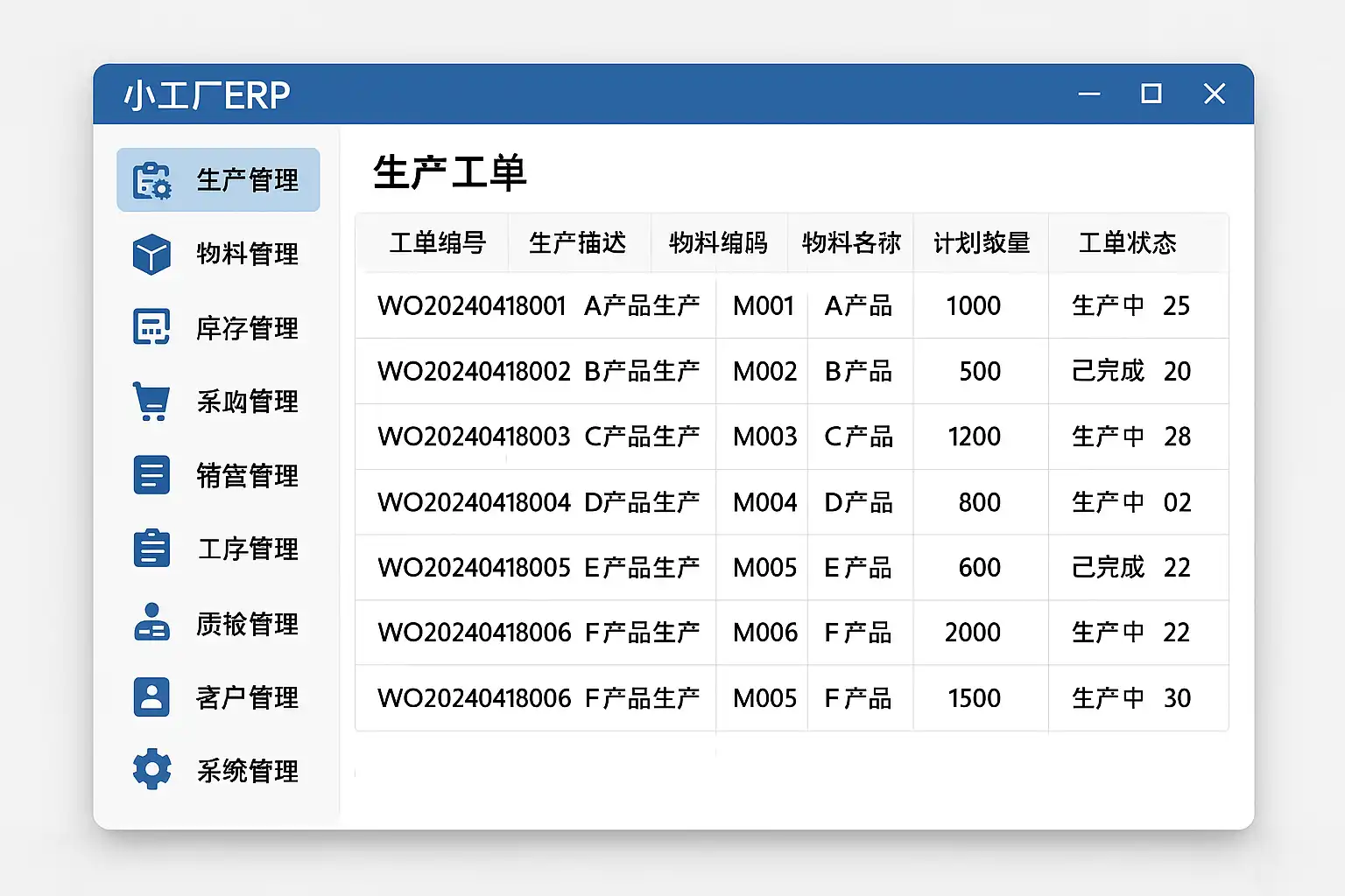 - 订单驱动式生产: 客户下单后自动流转到排产→领料→检验→出货,全程透明追踪。