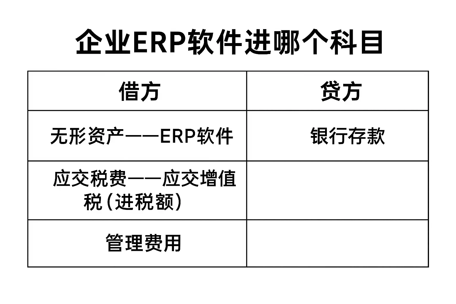 管理费用-软件服务费:若ERP软件为租赁、订阅或金额较小的软件许可费用,则应计入当期管理费用中的“软件服务费”或“信息技术服务费”。