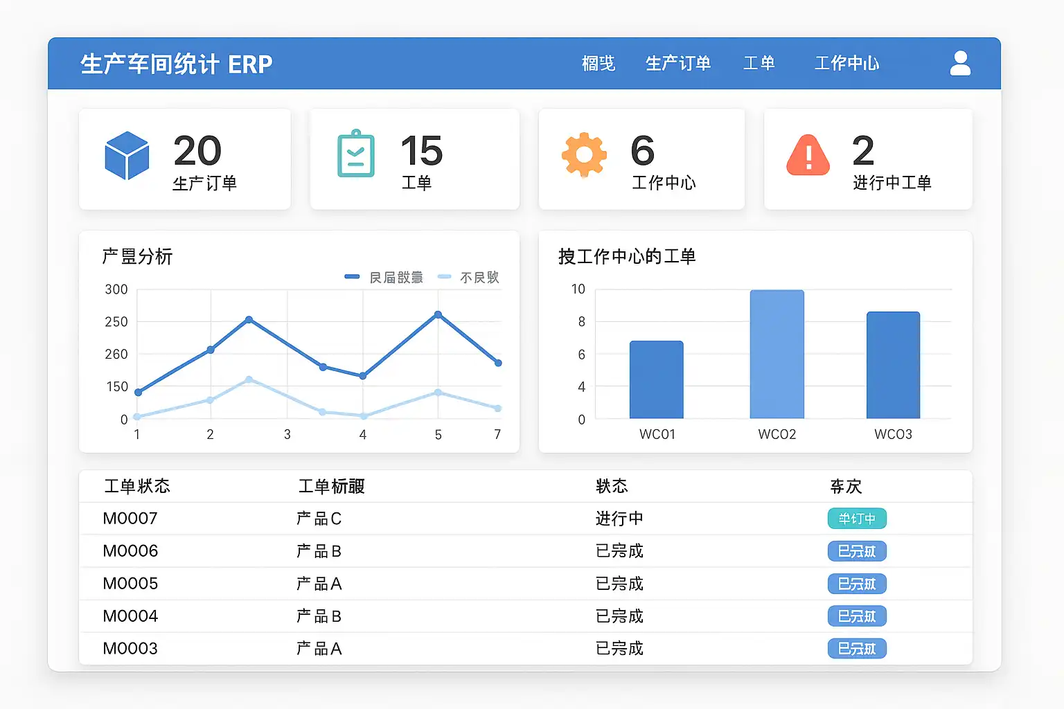 这些需求决定了一个优秀的车间统计ERP不仅要具备标准化管理能力,还要能灵活适应不同类型生产线、多样化产品结构及复杂工艺流程。