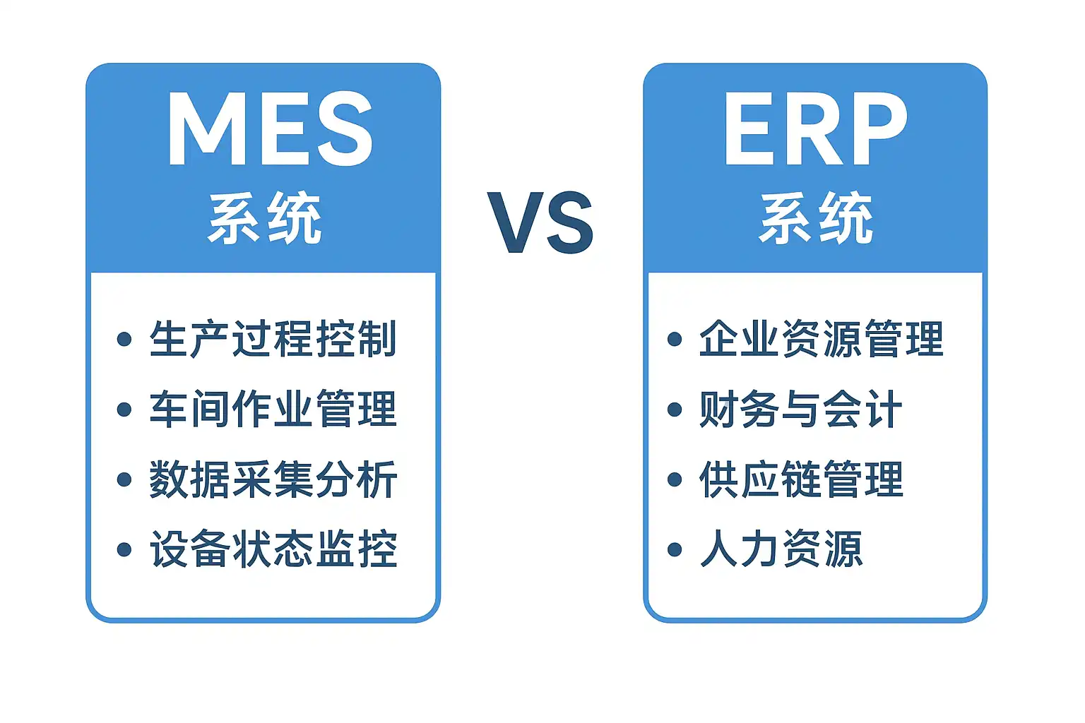 - 上层(ERP)战略决策,下层(MES)高效执行