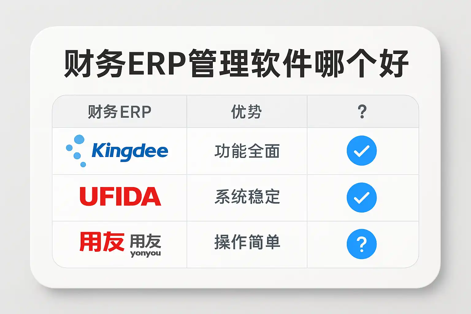 | 1 | 功能全面性 | 涵盖总账、应收应付、报表分析、固定资产等模块 |