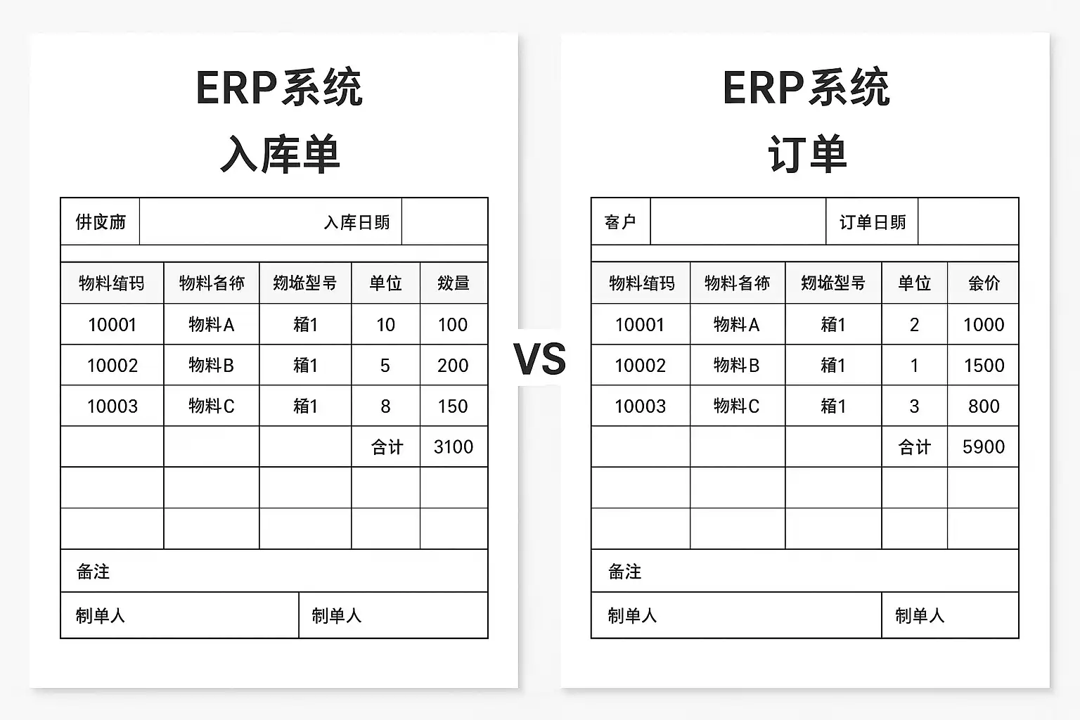 | 核心作用 | 库存数量变动、物料追踪、质量检验依据 | 明确交易关系、推动采购/销售流程 |