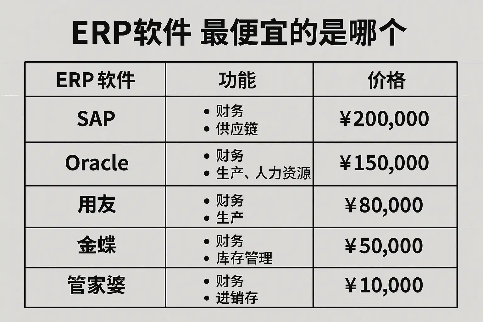 | ERP类型 | 代表产品 | 主要定价形式 | 价格区间(参考/年) |