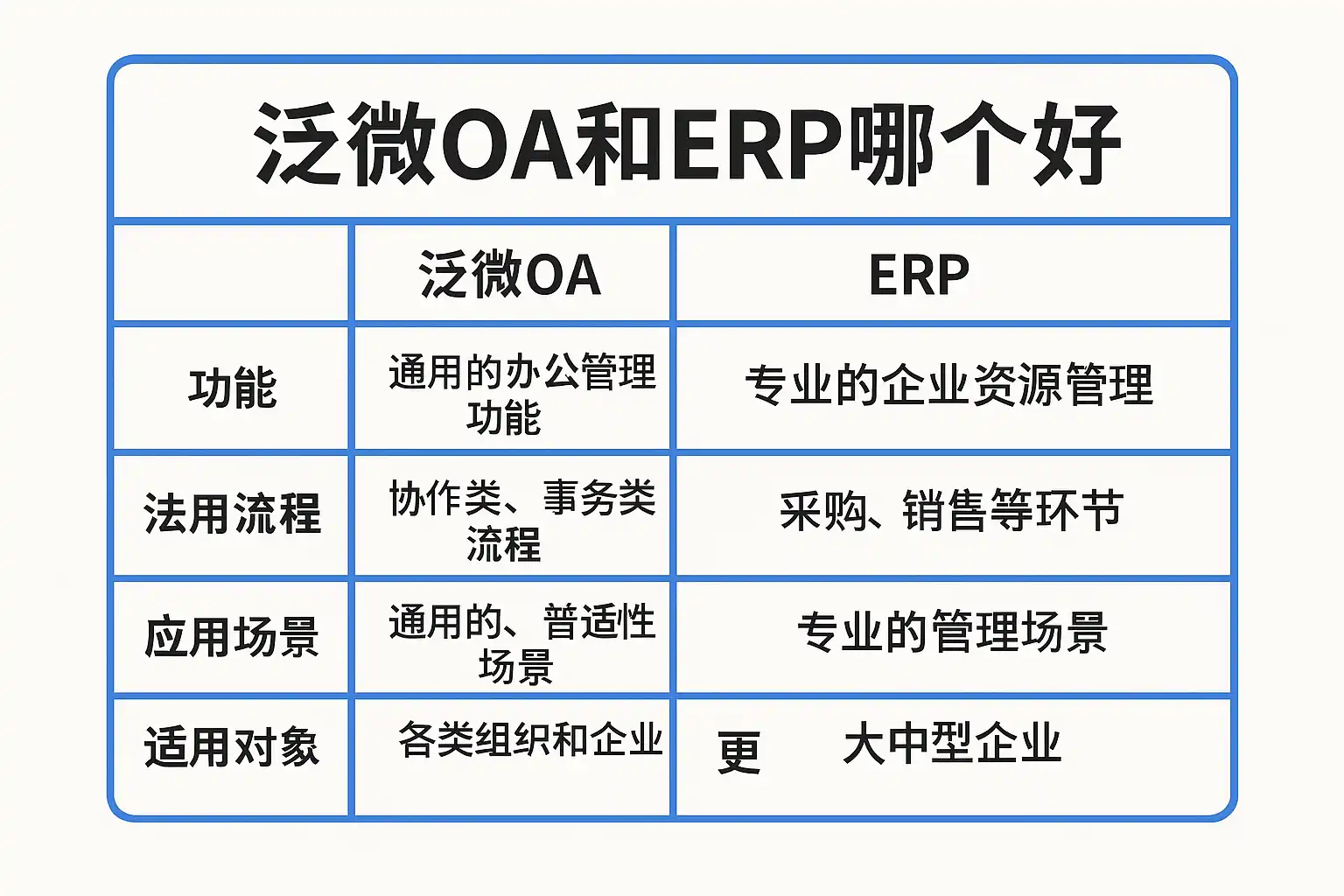 | 维度 | 泛微OA | ERP |
