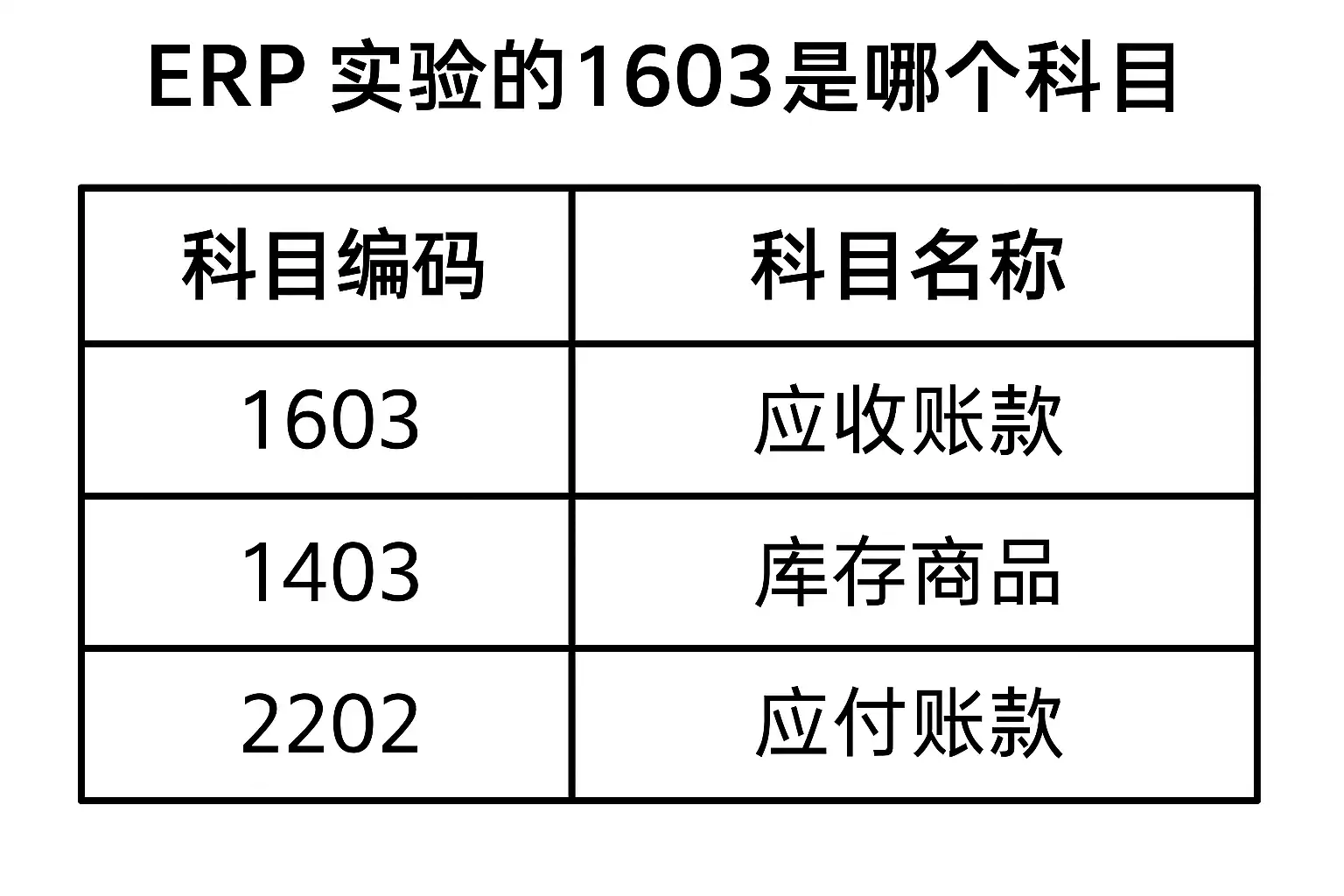 《erp实验的1603是哪个科目》