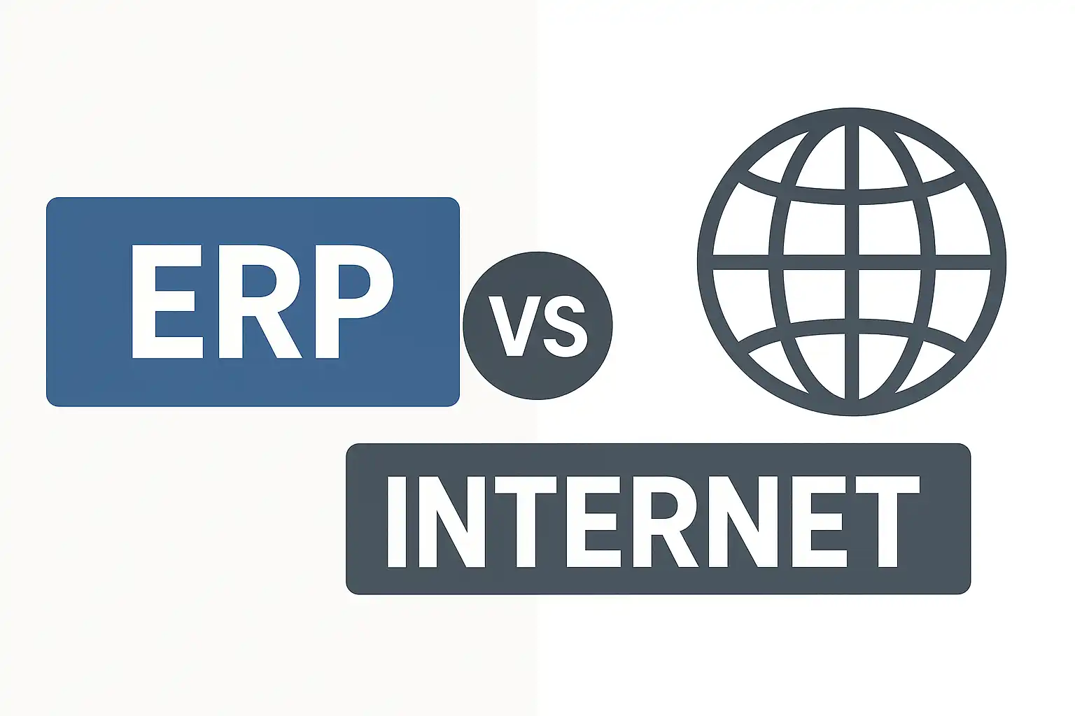 ERP(Enterprise Resource Planning,企业资源计划)和互联网虽然在现代企业发展中都扮演着重要角色,但两者关注点和应用场景存在本质区别。