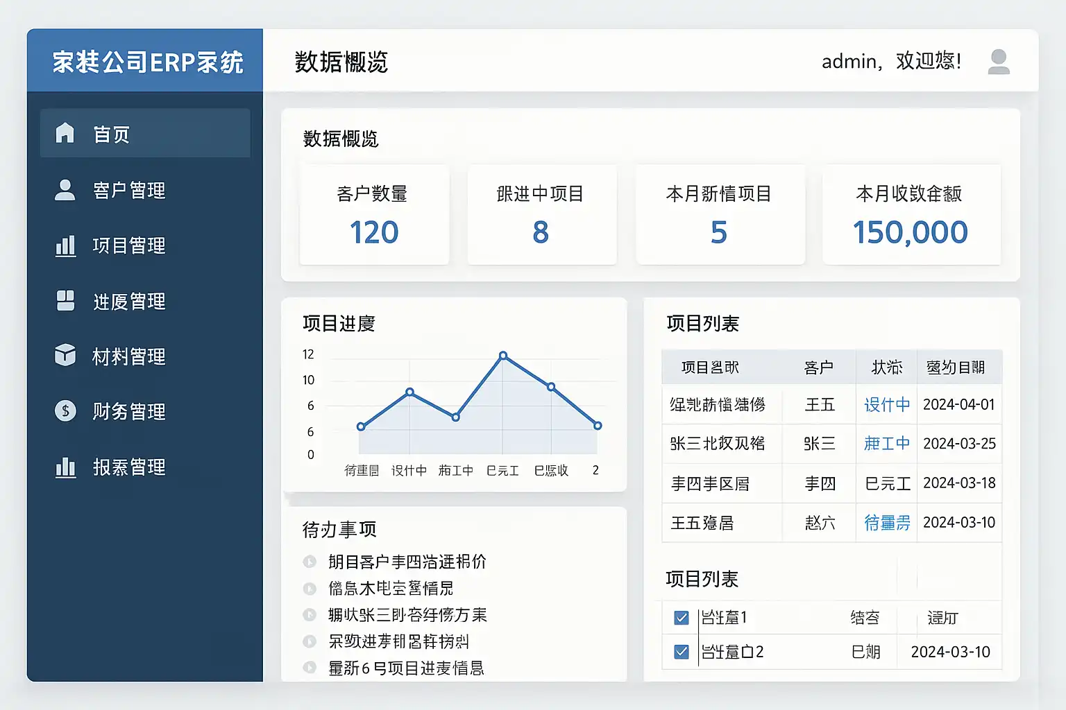 - 工程进度计划:可视化工地排期和施工节点提醒,提高交付效率。