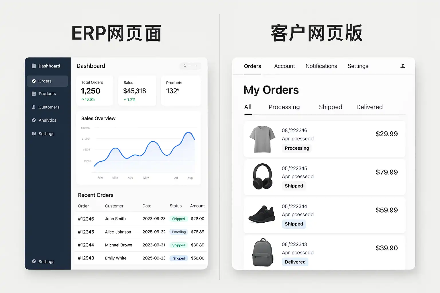 - ERP网页版:用户只需通过浏览器(如Chrome、Edge等)输入访问地址,无需安装任何插件或程序,便可直接操作系统。