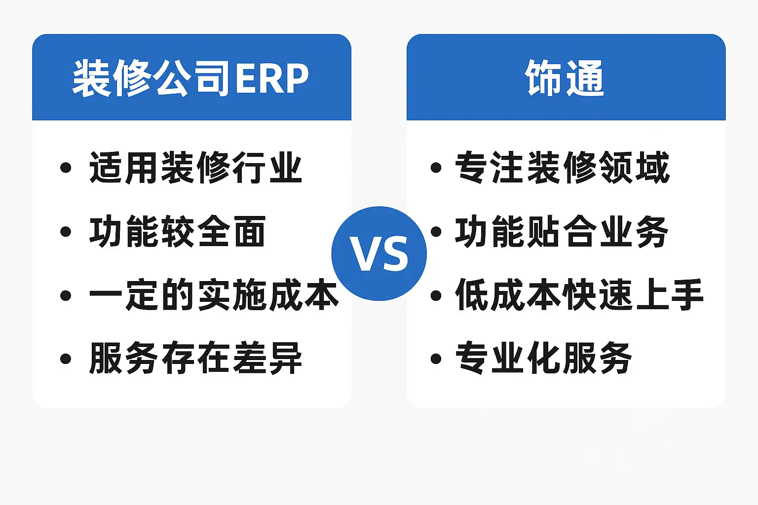 | 功能模块 | 装修公司ERP | 饰通系统 |