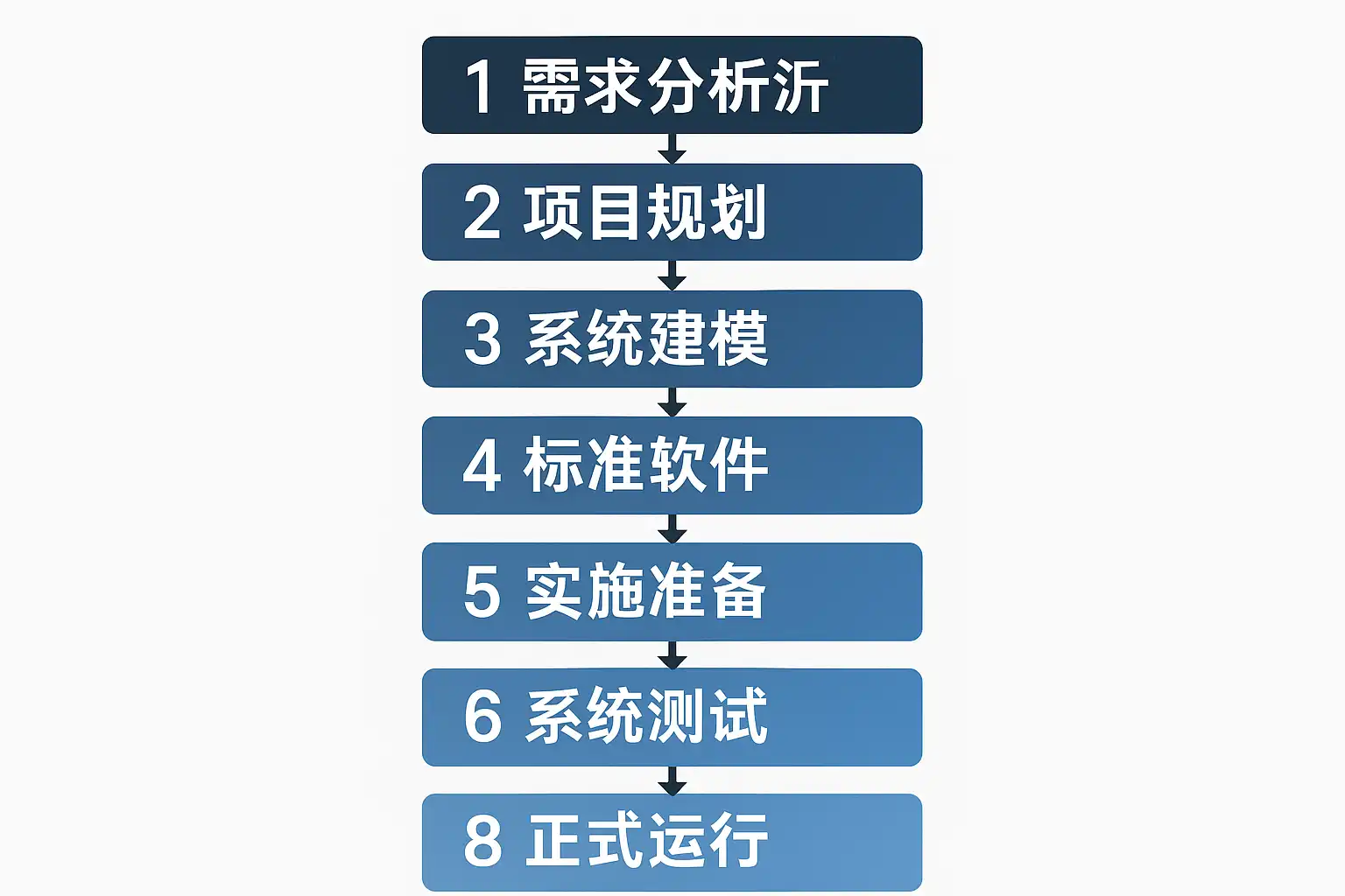 每一步都紧密衔接,确保从需求明确到系统上线都有条不紊。例如,在“需求调研”阶段,通过访谈和问卷收集业务需求,保证后续设计符合企业实际运营。
