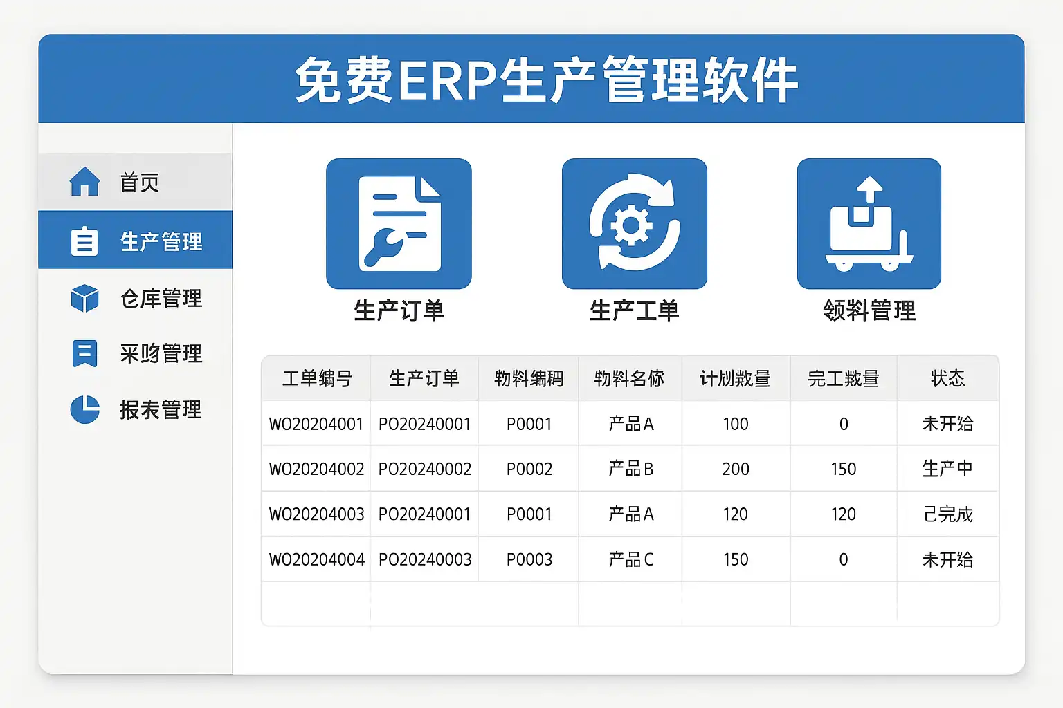 免费ERP生产管理软件通过集成多项核心功能来提升生产效率,包括: