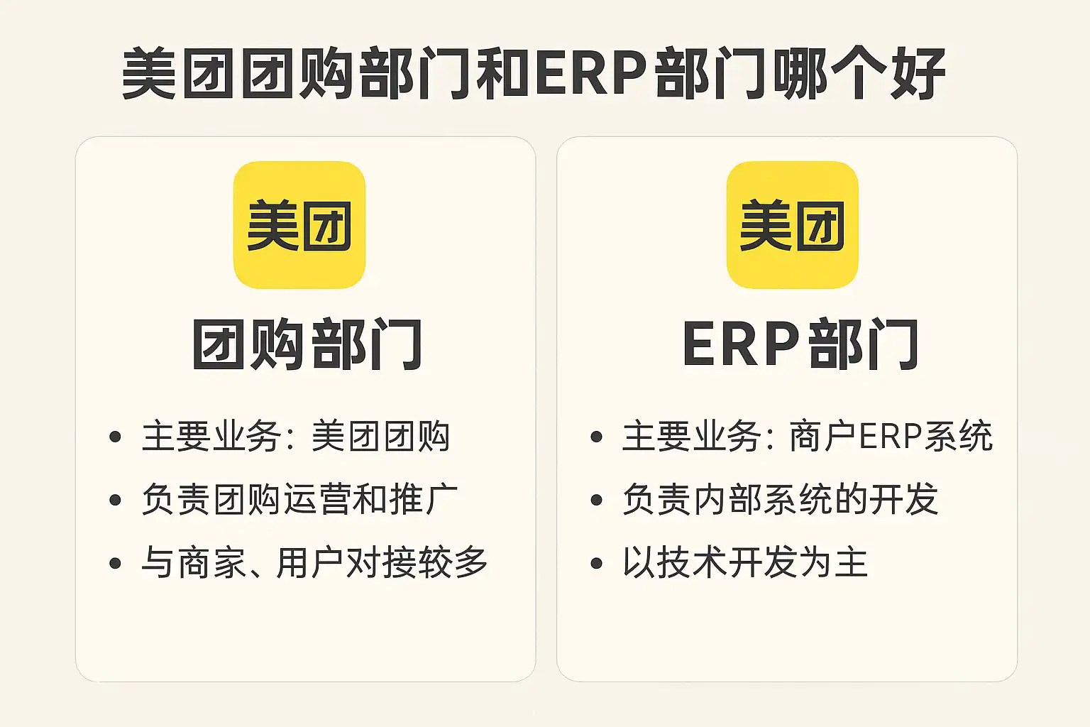 美团团购部门和ERP部门哪个好?哪个岗位更适合你?