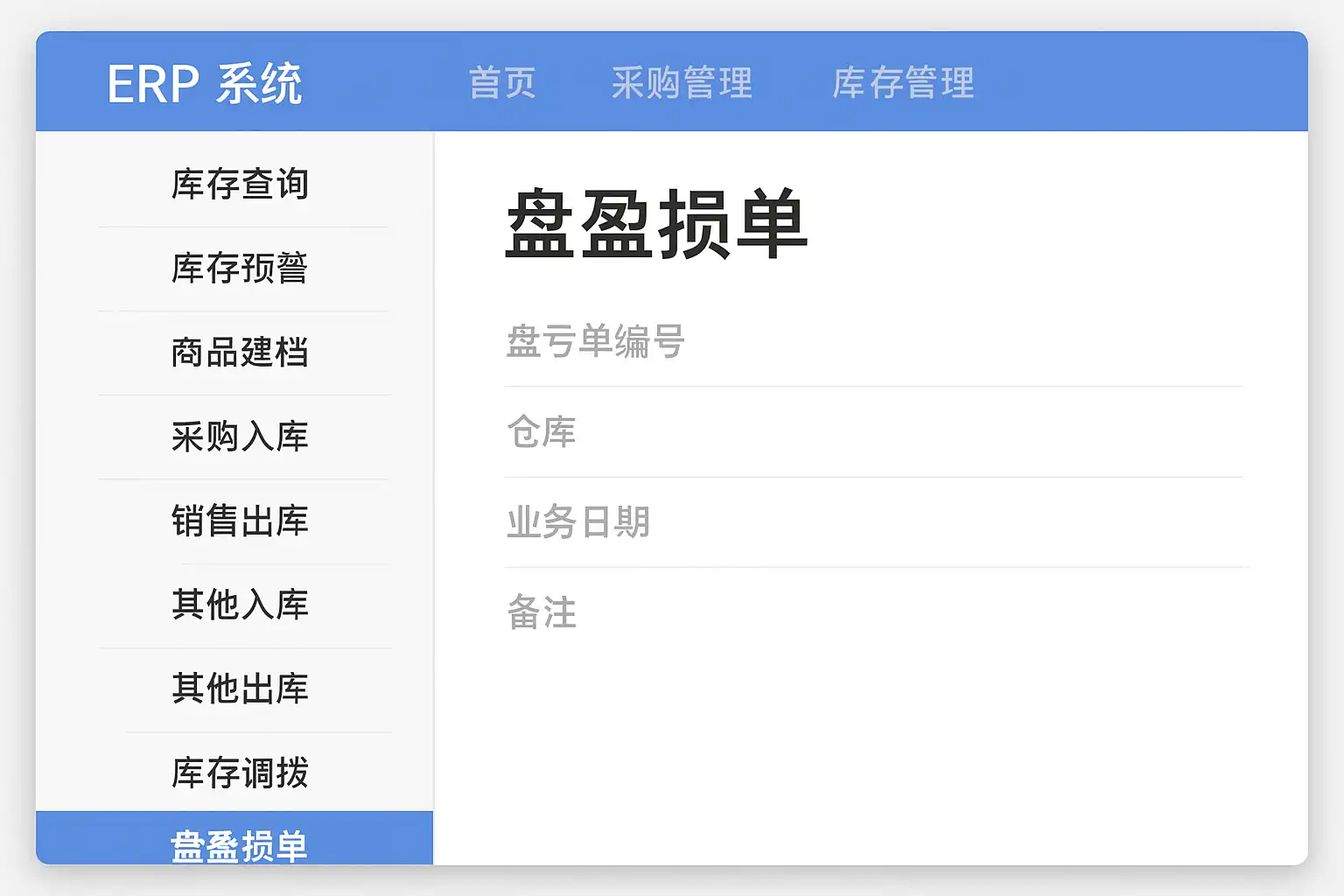 | 用友U8 | 库存管理 → 库存业务处理 → 其他出入库单 | 包含盘亏(出)和盘盈(入) |