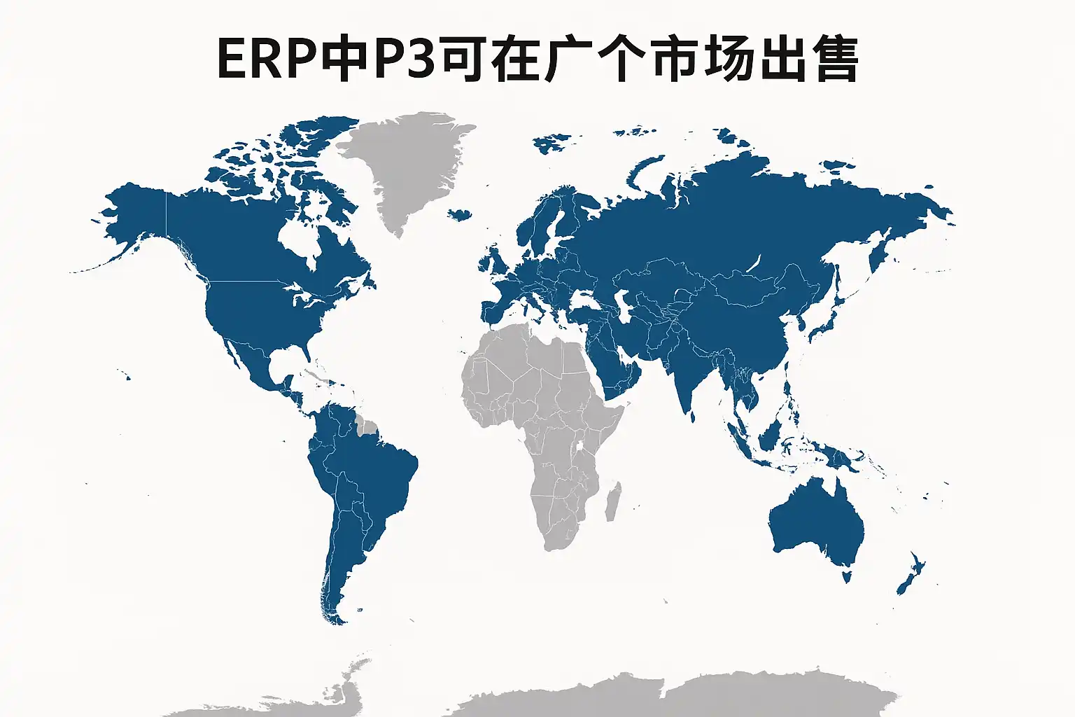 我在使用ERP系统时,遇到了关于P3产品销售市场的疑惑。不清楚P3具体支持在哪些市场进行销售,希望了解详细的市场分布情况。