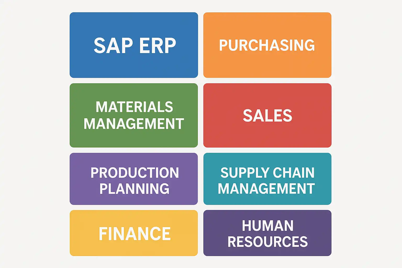 | 物料管理 | MM | 覆盖请购申请、询价/报价单处理、采购订单创建与跟踪、收货/入库等 |