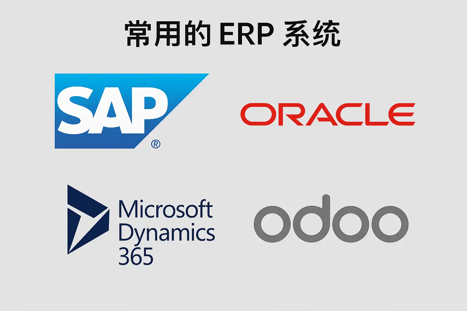 | 中大型集团公司 | 标准化+全球管控+稳健扩展 注重纵深行业解决方案融合 强调数据安全法规合规 | SAP ERP / Oracle ERP Cloud / 用友U8旗舰版 |