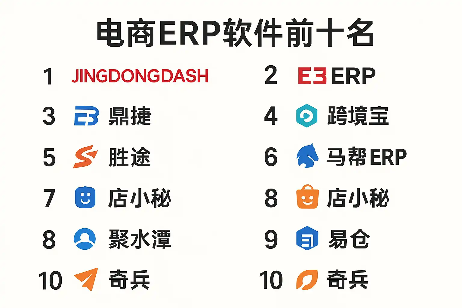 我最近准备给我的电商店铺选一款ERP软件,但市面上选择太多了,想知道目前市场上公认的电商ERP软件前十名都有哪些,方便我做个比较。