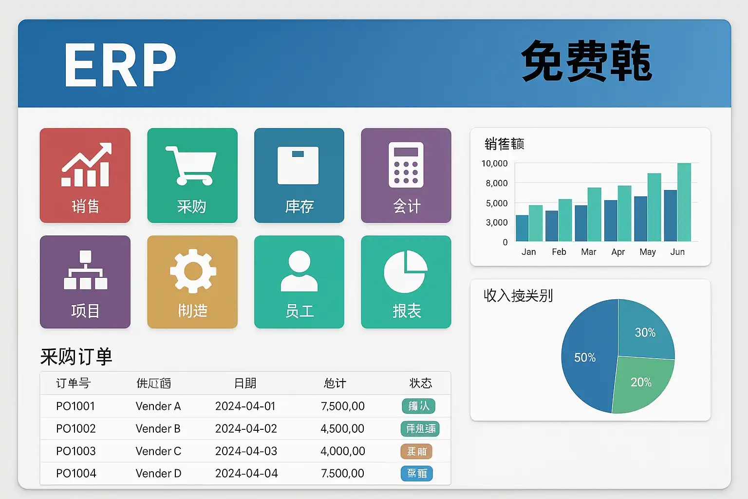 ERP(Enterprise Resource Planning, 企业资源计划)是集成管理企业财务、人力、采购、销售、库存等多项业务流程的信息系统。免费ERP系统指的是用户无需支付许可费用即可安装和使用的ERP软件,这类产品通常以开源或SaaS(部分免费)模式提供。