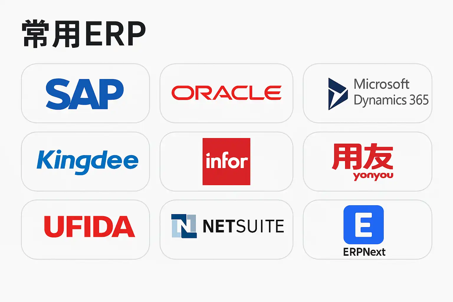 常用ERP(企业资源计划)系统是一类集成化管理软件,帮助企业整合财务、采购、库存、生产、人力资源等业务流程。主要功能包括: