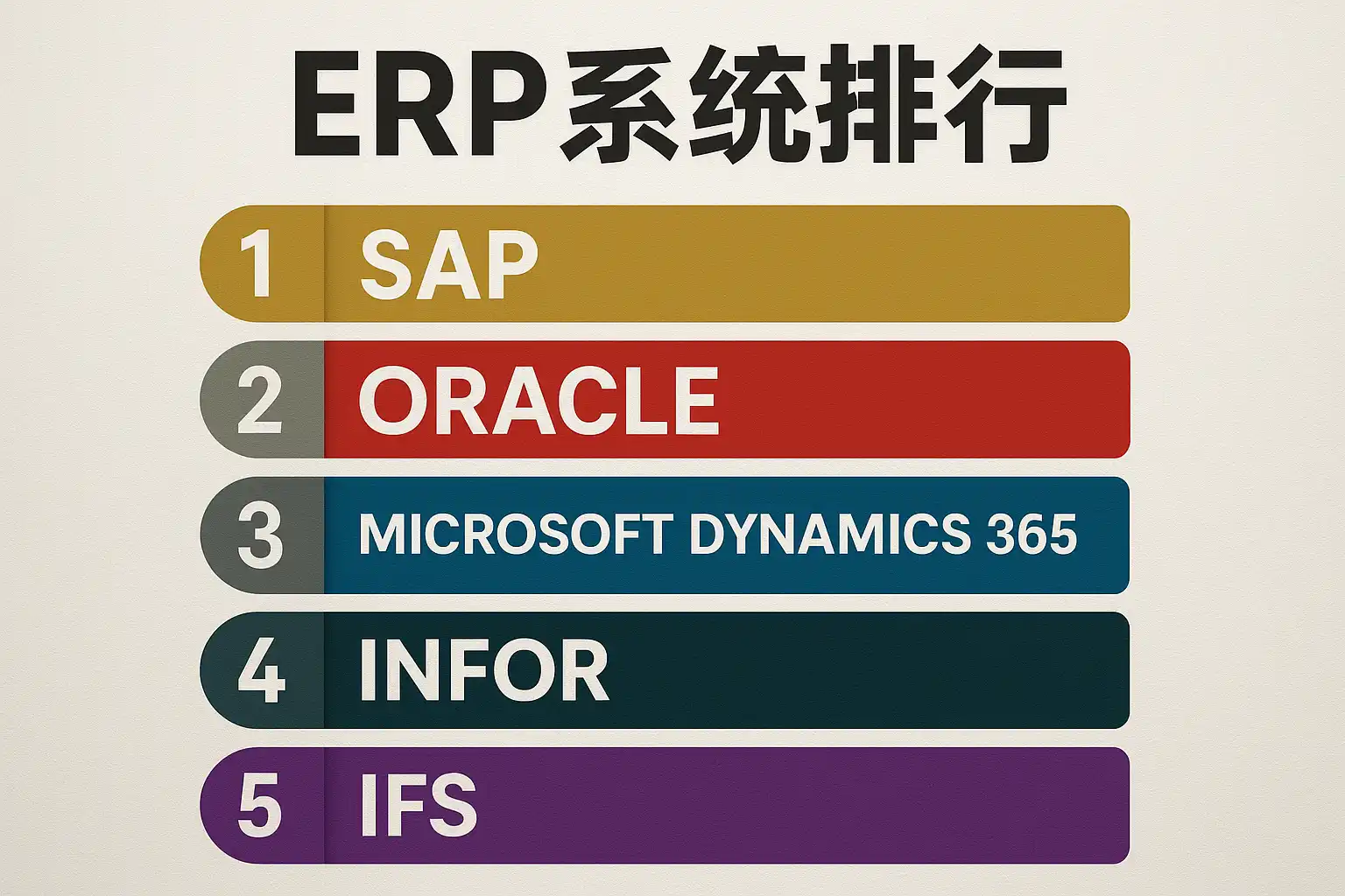 | 1 | SAP ERP | SAP | 大中型/跨国企业 | 模块全面,全球化强 |