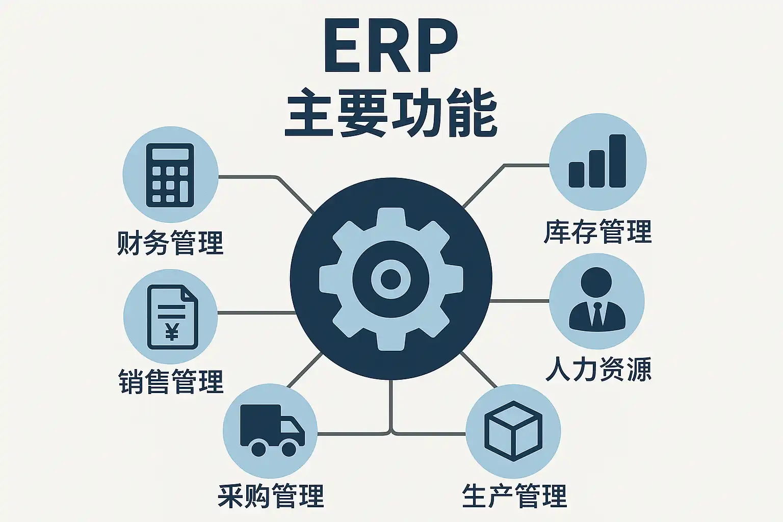 ERP(企业资源计划)系统的主要功能涵盖以下几个核心模块: