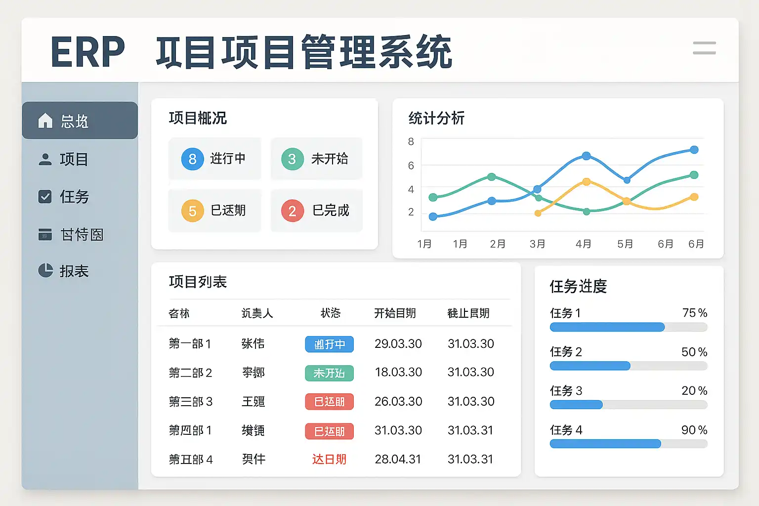 ERP(Enterprise Resource Planning,企业资源计划)项目管理系统是一种集成式信息平台,通过统一的数据结构和业务流程,实现企业在项目运作过程中的多维度协作与资源优化。它不仅整合了传统的财务、人事、采购、库存等模块,还将项目立项、计划编制、进度控制、成本核算等功能无缝衔接,为项目型或多任务型企业提供了一站式解决方案。