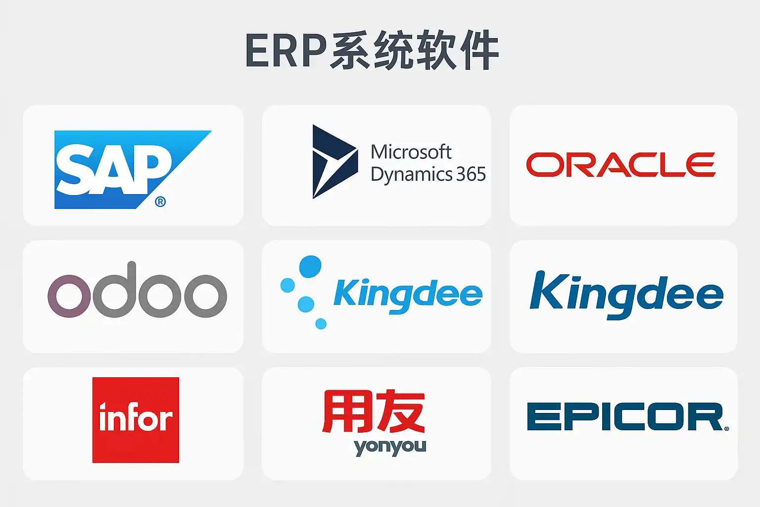 不同规模、不同行业对ERP产品有不同需求。以下是目前市场上常见且应用广泛的几款ERP系统: