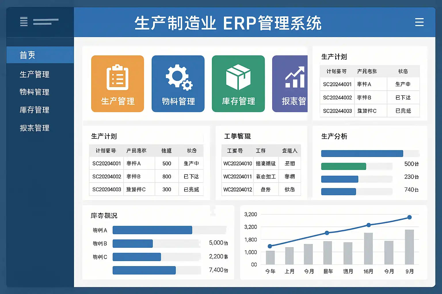 ERP(Enterprise Resource Planning,企业资源计划)是一体化的信息管理系统,将企业的采购、生产、库存、销售、人力资源和财务等核心业务流程集成于统一平台。对于生产制造业而言,专属的ERP管理系统不仅支持日常运营,还能实现以下目标: