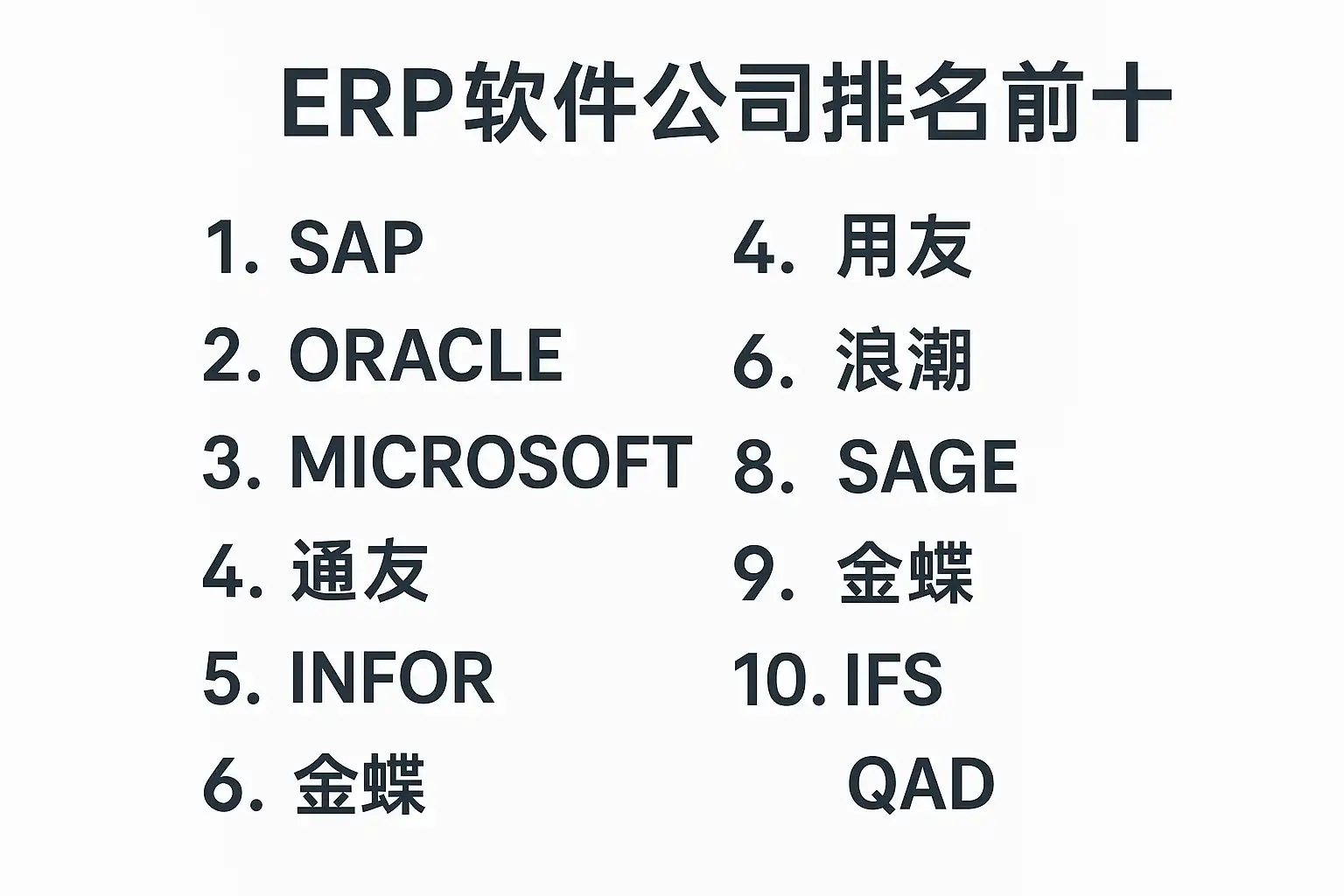 ERP软件公司排名前十通常通过多维度指标综合评定,包括市场占有率、客户满意度、产品功能丰富度、技术创新能力和售后服务质量。具体来说: