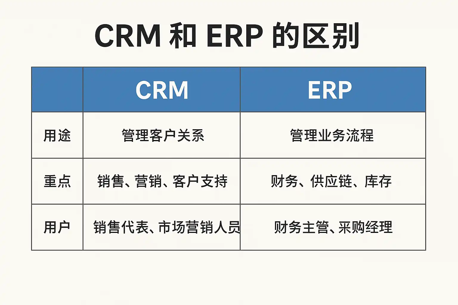 我在工作中常听到CRM和ERP这两个系统,但它们具体有什么不同呢?它们的核心功能和应用场景有哪些区别?