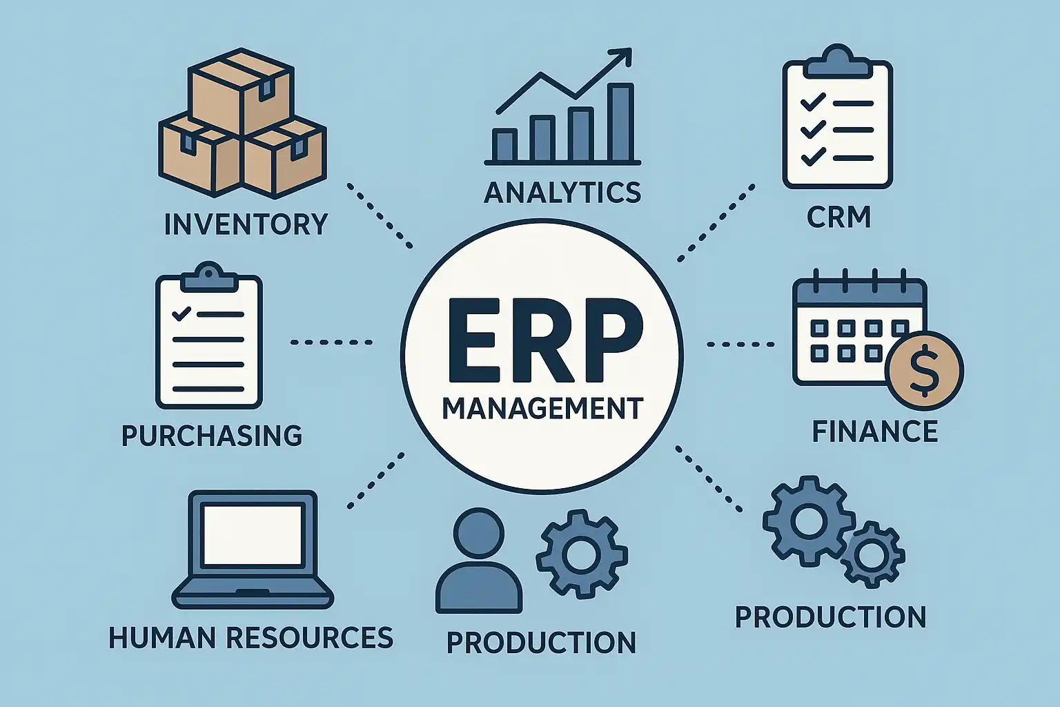 ERP(Enterprise Resource Planning)管理指的是通过集成化软件系统,对企业的财务、人力资源、供应链、生产制造等核心业务流程进行统一规划与管控。其本质目的是打破“信息孤岛”,让各部门在同一平台协作,实现资源最优分配。