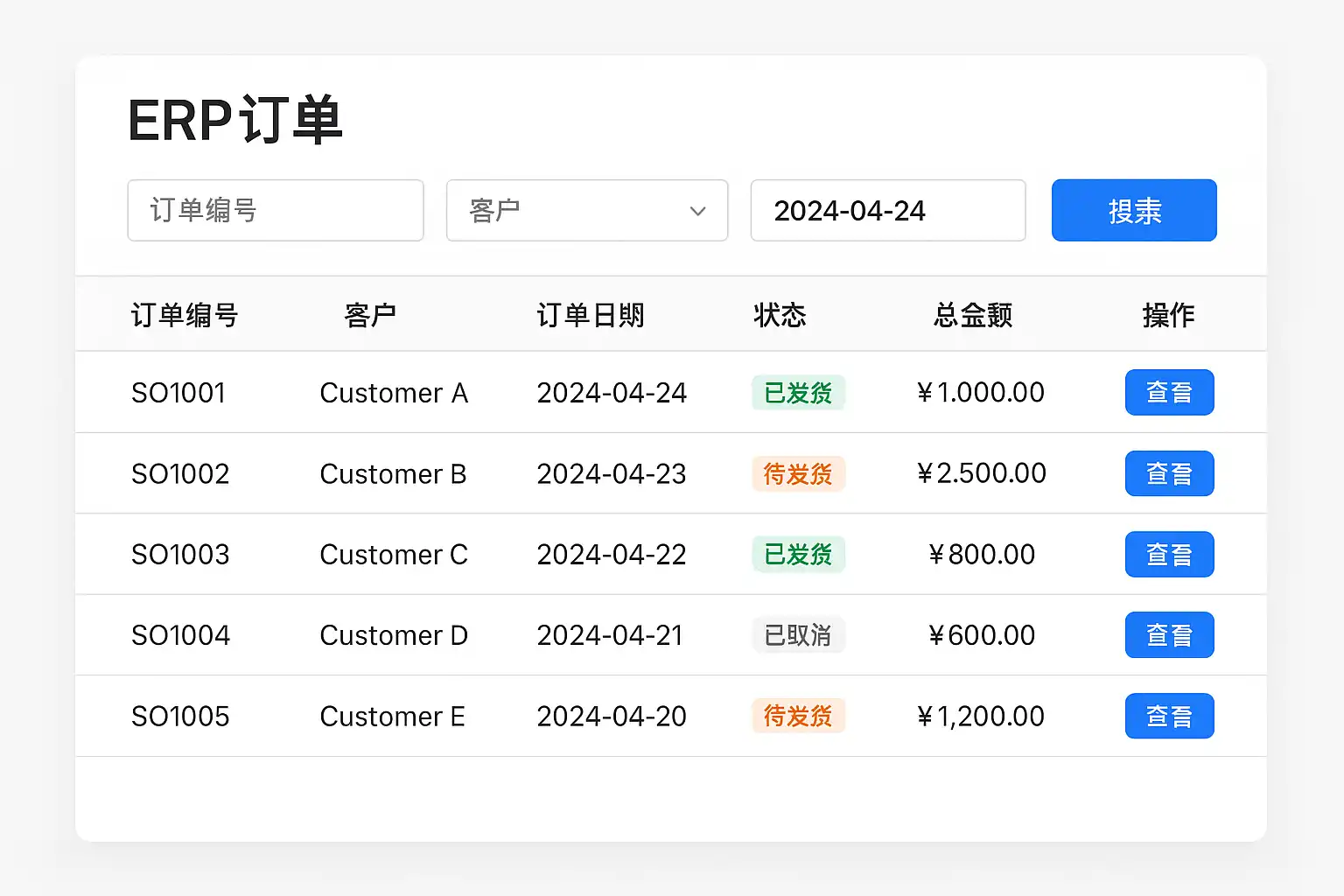 ERP订单(Enterprise Resource Planning Order)指的是企业在销售、采购或生产过程中,通过ERP系统生成并管理的各类业务单据,包括销售订单、采购订单、生产工单等。其核心作用体现在以下几个方面: