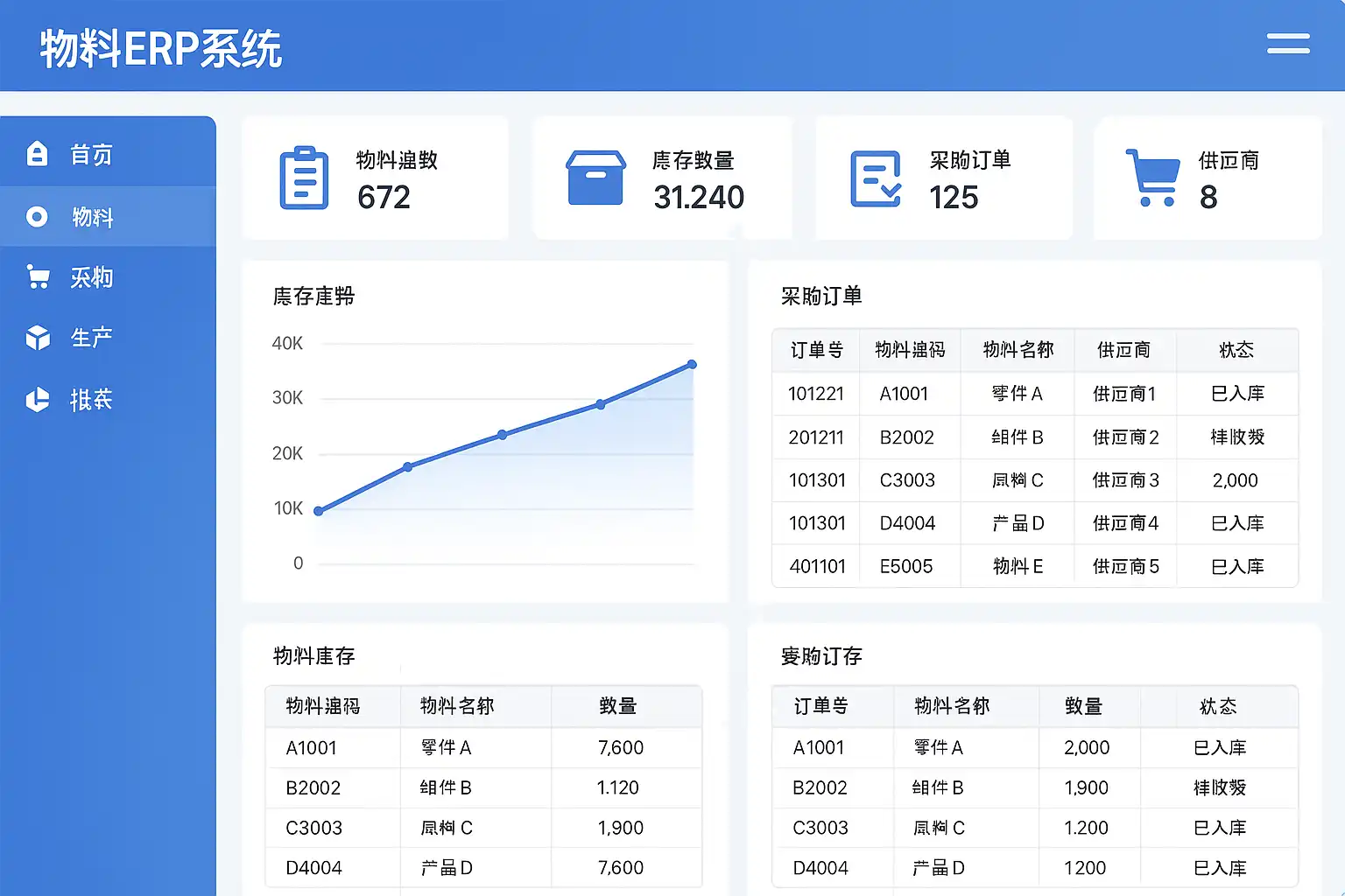 物料ERP(Enterprise Resource Planning,企业资源计划)系统专注于企业物料相关的数据管理与流程整合。它涵盖从原材料采购、仓储管理、生产控制到成品发货等全流程,通过数字化手段连接供应链上下游,实现资源最优配置。
