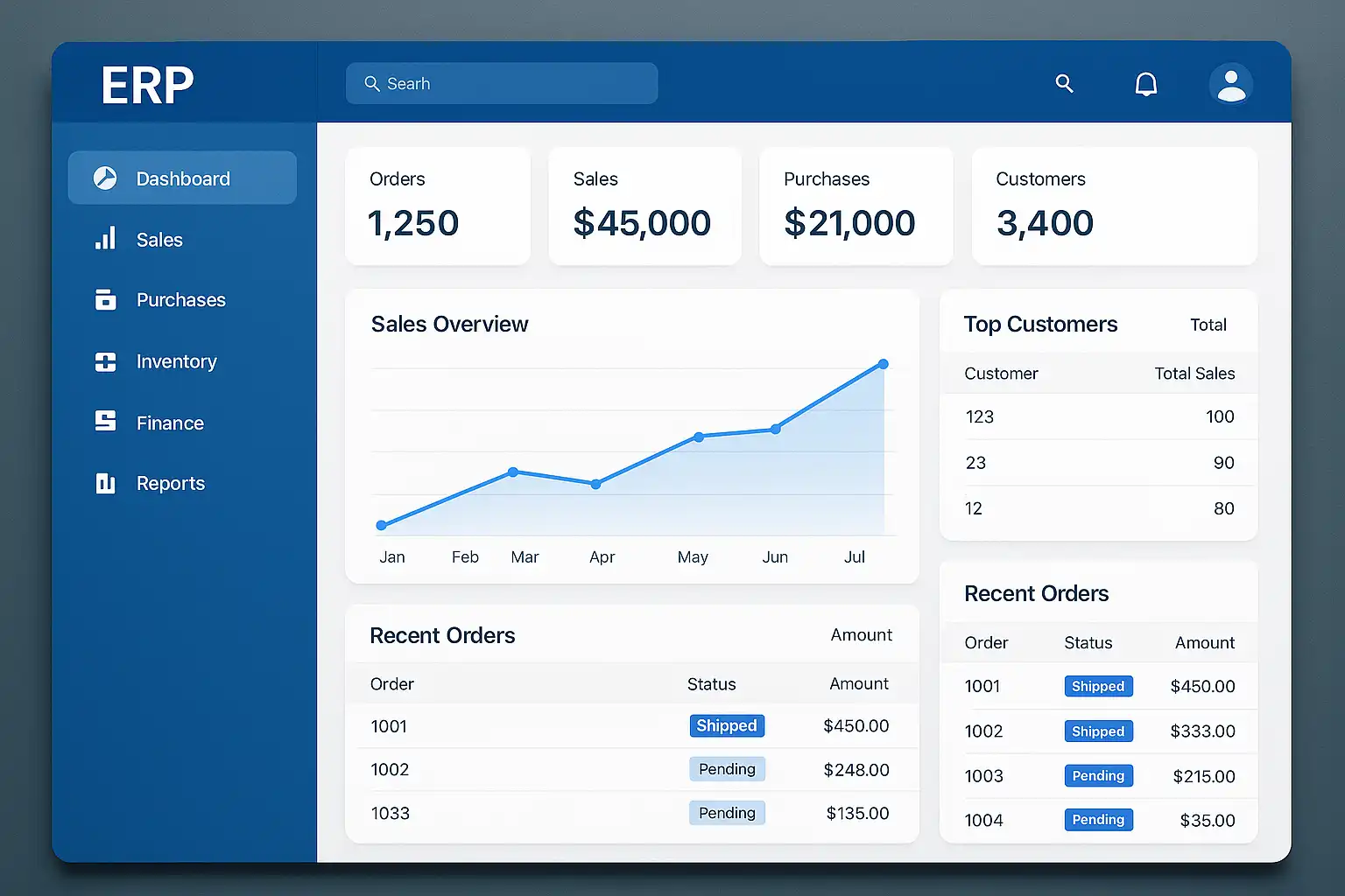 ERP(Enterprise Resource Planning)办公系统是一套用于实现企业资源统一管理的信息化平台。其核心目标是将采购、生产、销售、人力资源、财务等多个业务流程进行集成,让各部门在同一平台上协作,实现数据共享和业务协同。