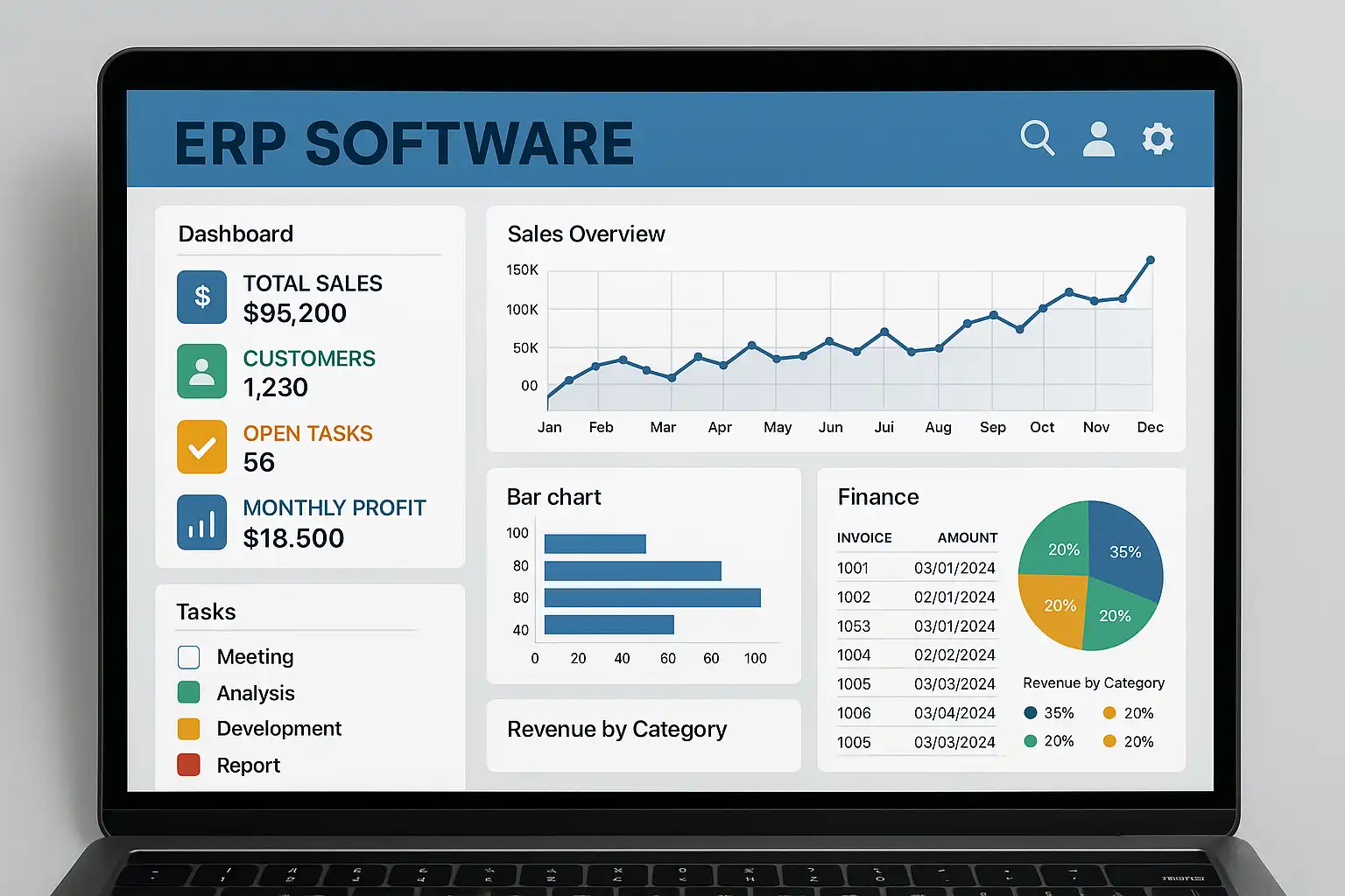 ERP(Enterprise Resource Planning,企业资源计划)是将企业内部各个业务模块(如财务、人力资源、采购、生产、销售等)通过信息技术手段整合在一个统一的平台上的软件工具。其目的是提升跨部门协作效率,实现全链条的信息共享和数据驱动决策,为企业带来如下价值: