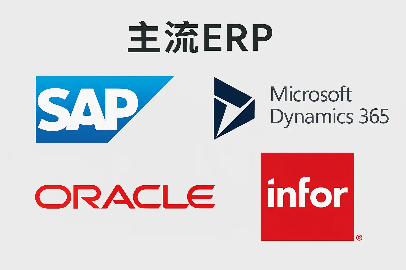 主流ERP系统主要包括SAP ERP、Oracle ERP Cloud、Microsoft Dynamics 365和用友U8等。它们的优势如下: