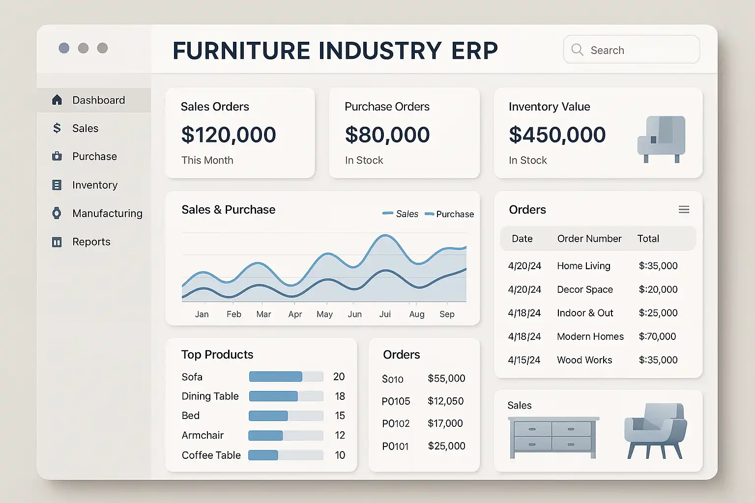 家具行业ERP系统主要涵盖库存管理、生产计划、销售订单处理、采购管理和财务核算五大核心功能。通过集成这些模块,企业可以实现库存实时监控,优化生产排程,提升订单处理速度,并确保采购与财务流程的透明化。例如,一家中型家具制造商通过ERP系统减少了20%的库存积压,同时订单处理时间缩短了30%。
