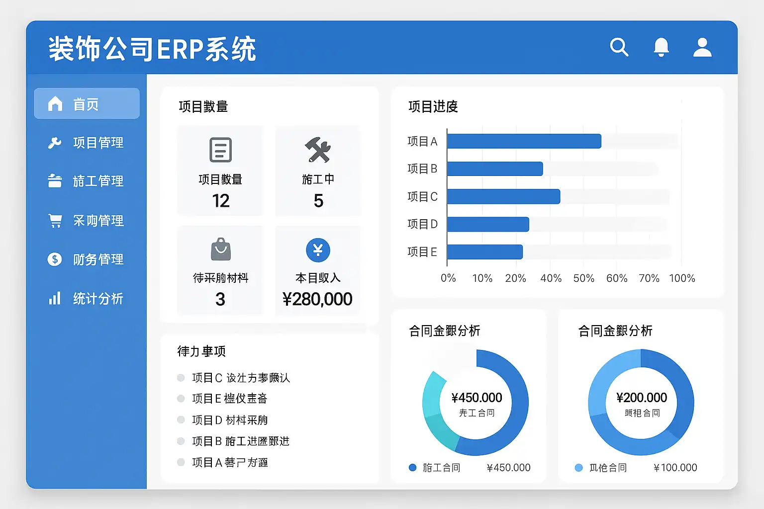 原因分析: 装饰行业涉及项目周期长、多角色协作及大量物资流转。传统手工或分散管理模式下,容易出现沟通不畅、进度混乱或成本超支。ERP系统通过集中数据处理和业务流程自动化,有效打破部门壁垒,实现信息共享。例如:某知名家装公司引入ERP后,工程延期率下降30%,材料浪费率降低22%,客户投诉率下降40%。这充分证明了数字化平台的赋能作用。