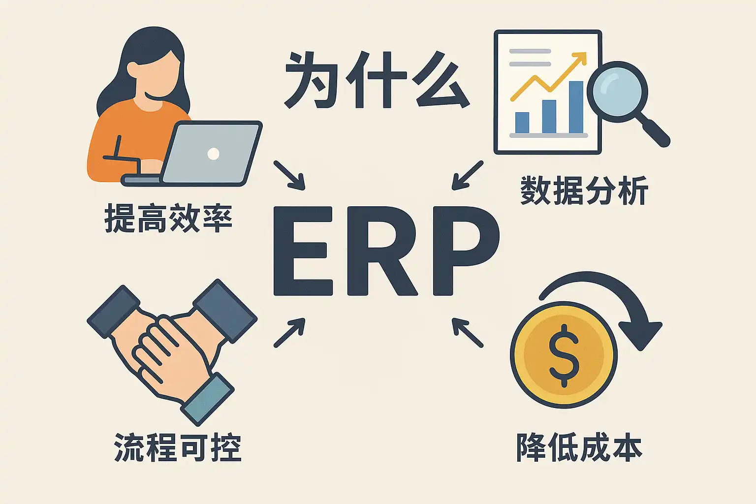 ERP(Enterprise Resource Planning,企业资源计划)是一套集成化的信息系统,用于协调和管理企业的财务、人力资源、采购、生产、销售等主要业务环节。其核心价值体现在以下几个方面: