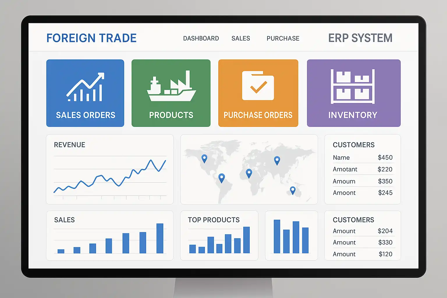 外贸公司ERP(Enterprise Resource Planning,企业资源计划)系统,是面向进出口贸易型企业的信息化管理工具。它将采购、销售、生产、仓储、物流、财务等多部门业务数据集中整合,实现业务流程自动化,提高企业运营效率。