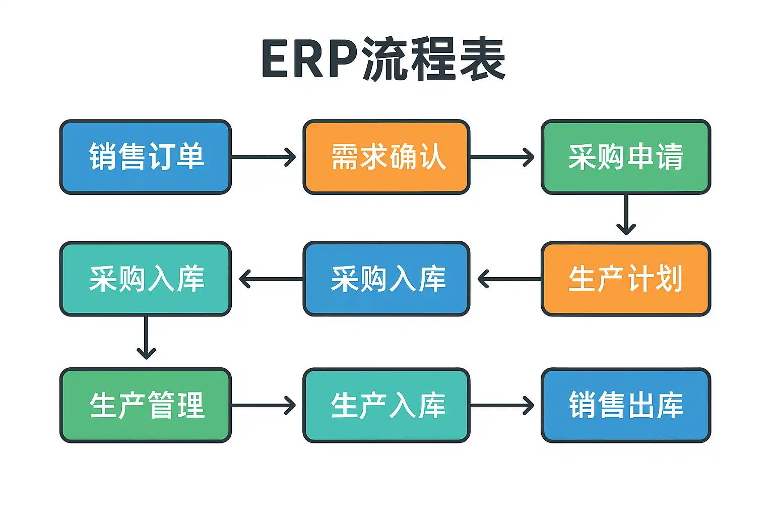 例如,一家制造型企业通过制定完整的采购到生产的ERP流程表,减少了订单处理时间30%,提升了整体供应链响应速度。