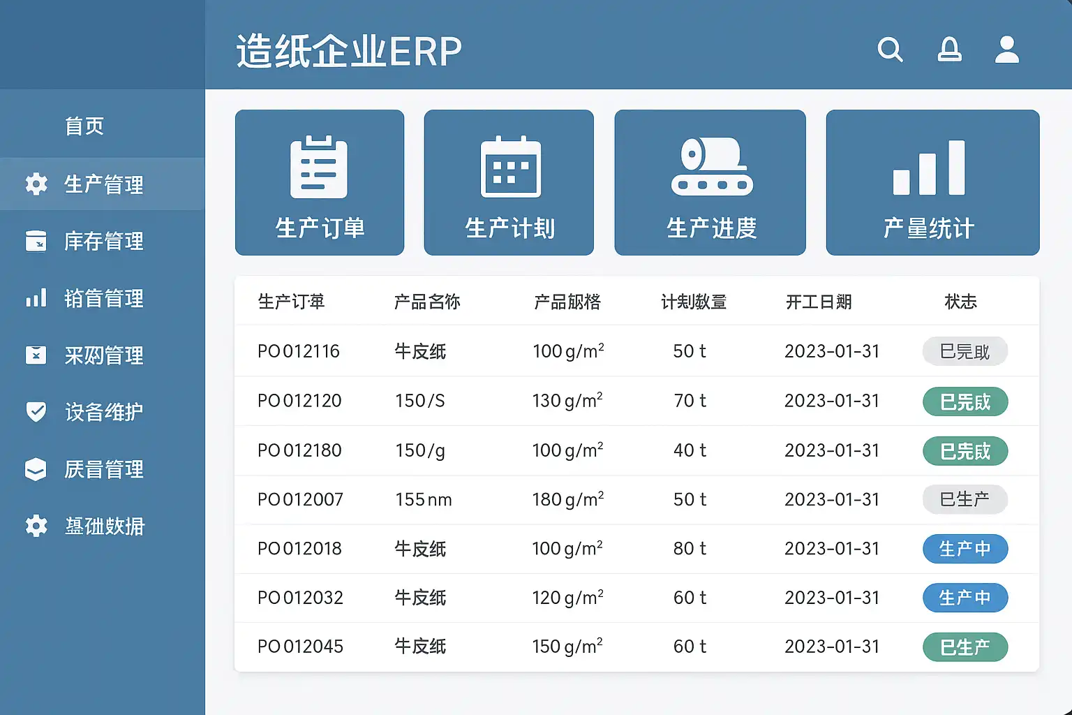 这些功能模块互相集成,实现了从源头到终端的信息闭环,帮助造纸企业打破部门壁垒,实现全面数字化管理。