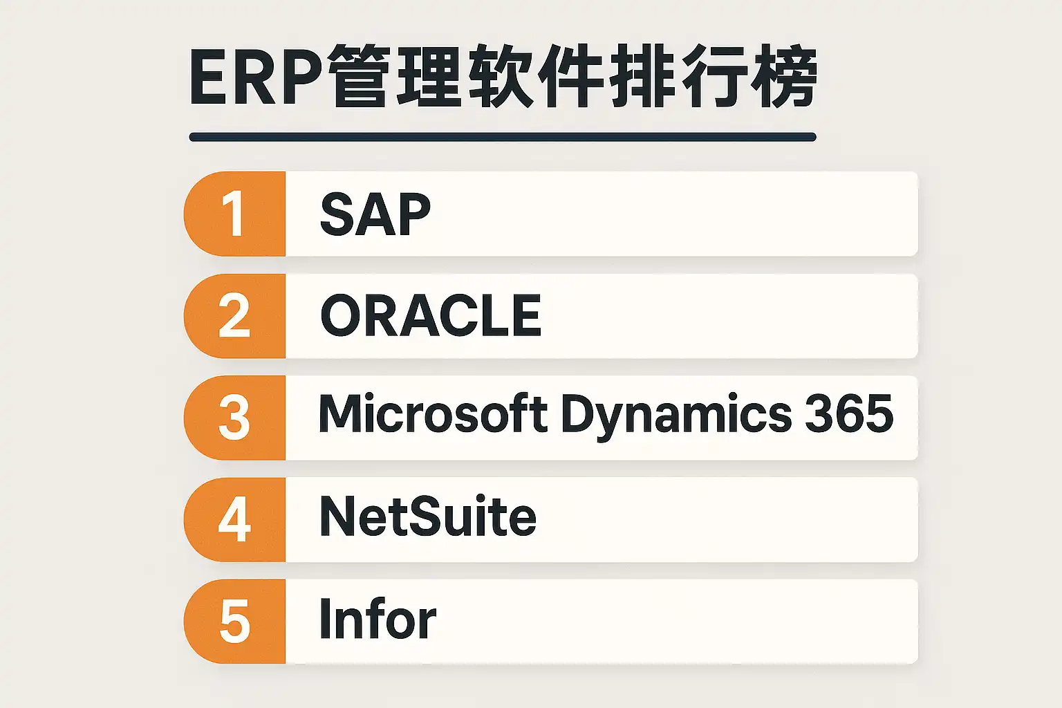 | 2 | Oracle ERP Cloud | 云端部署强大,全球支持 | 大中型企业 | https://www.oracle.com/cn/erp/ |