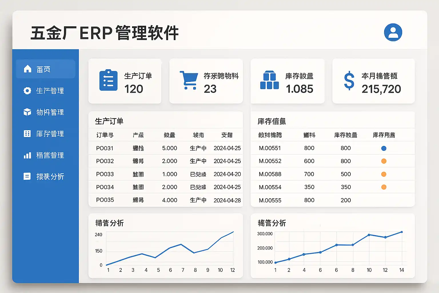例如,通过库存管理模块,某五金厂成功降低了15%的库存成本,同时提升了20%的订单履约率。