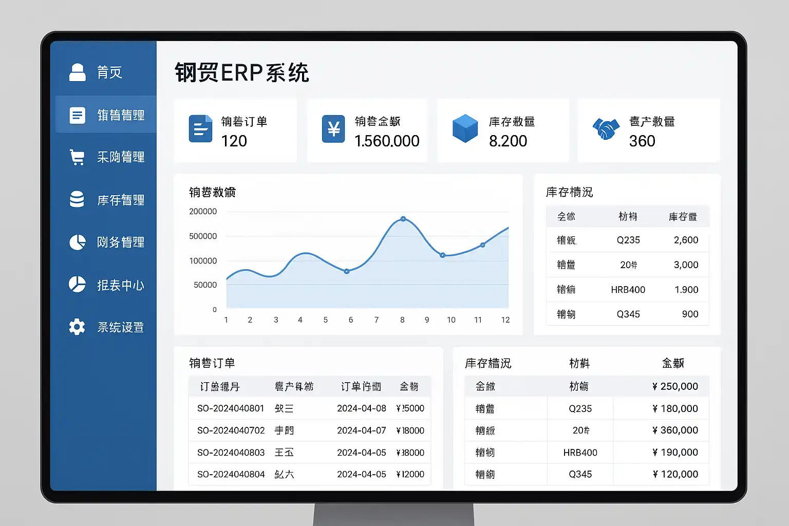 钢贸ERP系统是一种专为钢铁贸易行业设计的企业资源计划(ERP)软件,集成了采购、销售、库存、财务等关键业务模块。通过自动化流程和实时数据分析,钢贸ERP系统能够帮助企业实现库存精准管理、订单快速响应和财务透明化,从而提升整体管理效率。例如,一家中型钢贸公司采用该系统后,库存周转率提升了30%,订单处理时间缩短了40%。