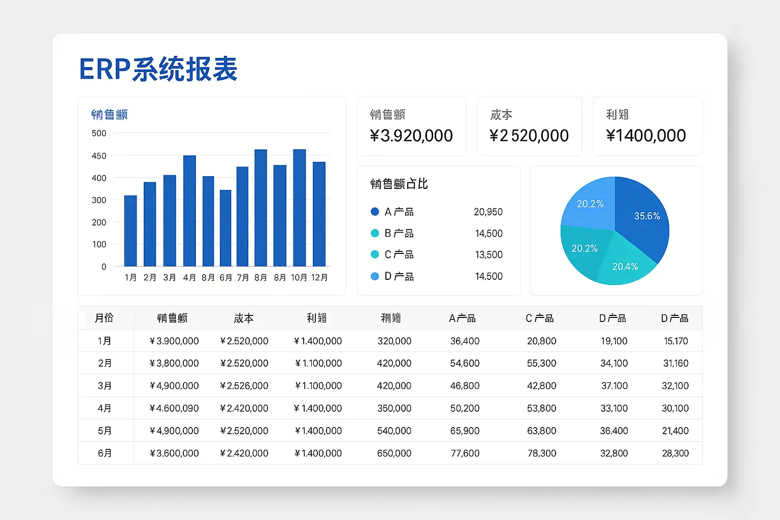 ERP(Enterprise Resource Planning)系统中的报表功能,是将企业各业务环节的数据进行整合并可视化展示的重要模块。其核心价值体现在以下几个方面: