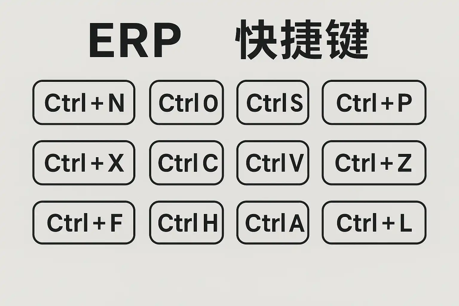 快捷键定义 ERP(Enterprise Resource Planning,企业资源计划)系统中的快捷键,指的是通过组合键盘上的特定按键,实现对系统功能的快速调用。其本质是对软件菜单栏及常用功能模块的高效访问通道。