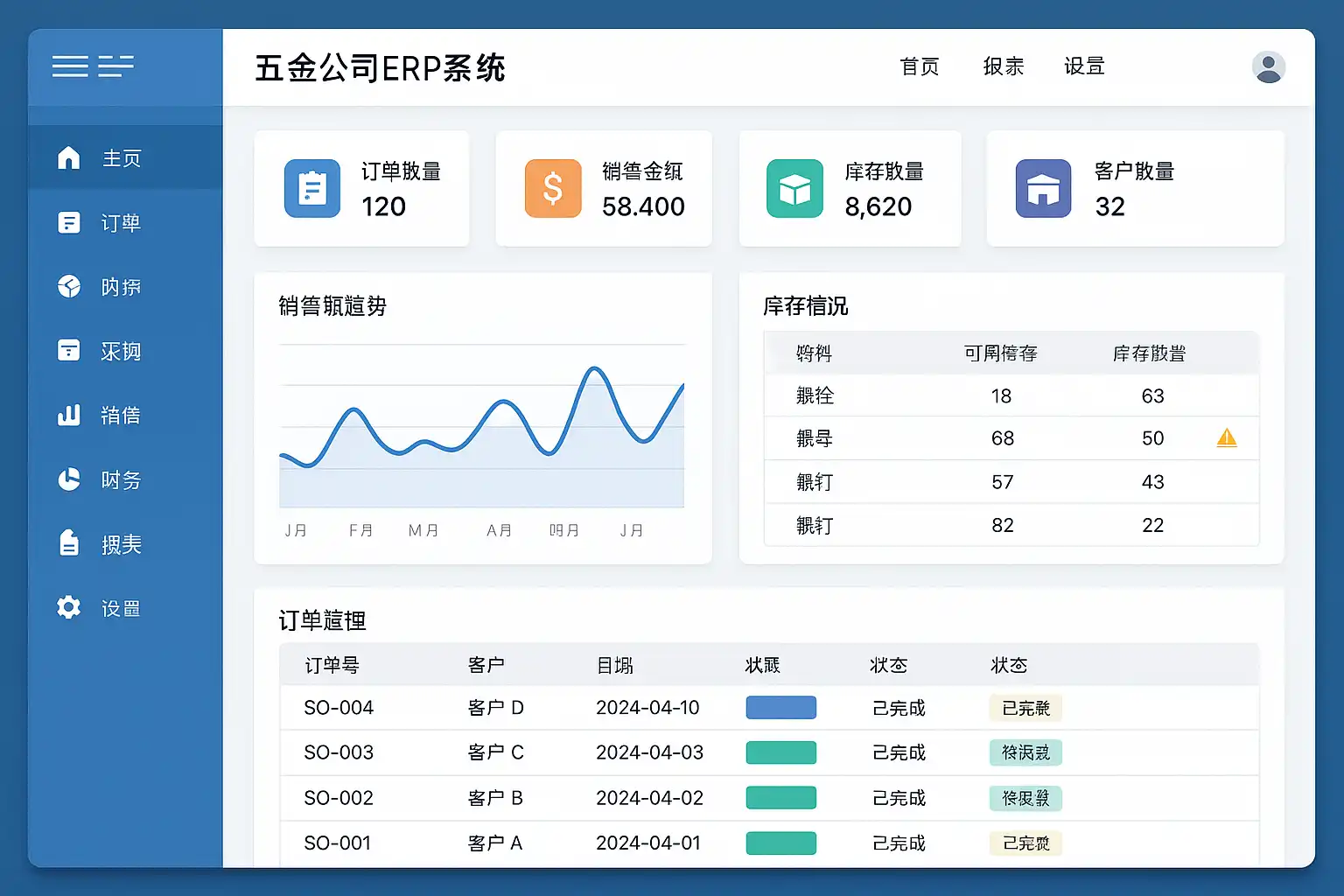 五金公司面临产品种类繁多、供应链复杂、客户订单分散等管理难题。适用的ERP系统能帮助企业解决流程混乱、信息孤岛等问题,实现业务数字化和自动化。